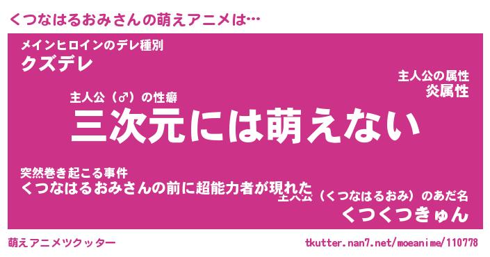 | 男性向けラノベタイトル風あだ名 | 『クツナハルオミアートオンライン』 |