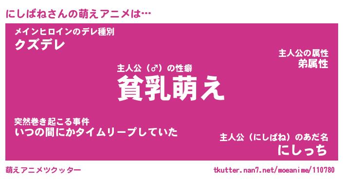 | 男性向けラノベタイトル風あだ名 | 『にしばねの憂鬱』 |