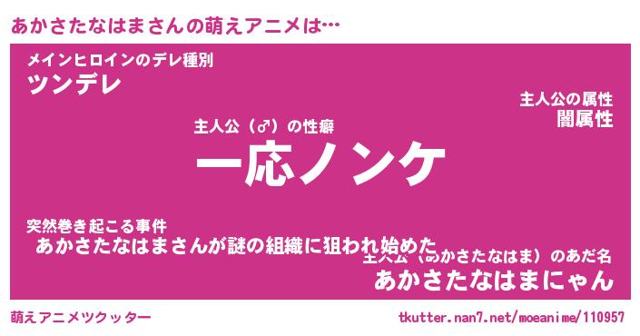 | ヘコむあだ名 | 『あかにー』『つくし』『あかぷりん』 |