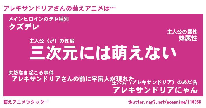 | 男性向けラノベタイトル風あだ名 | 『アレキサンドリアアートオンライン』 |