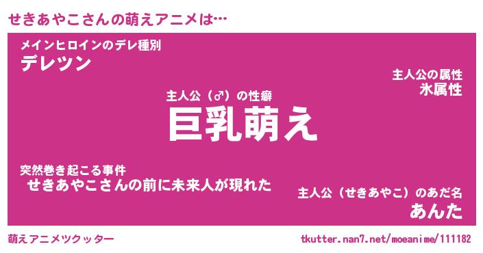 | 男性向けラノベタイトル風あだ名 | 『せきあやこの憂鬱』 |