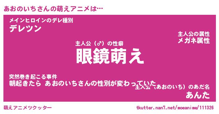 | ファンタジー風あだ名 | 『アオフェル』『エターナルアオノイチー』 |