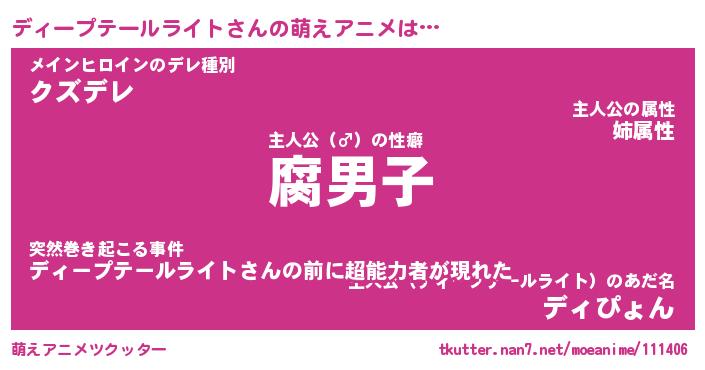 | 男性向けラノベタイトル風あだ名 | 『ディープテールライトアートオンライン』 |