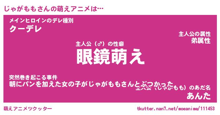 | 胡散臭い通販商品みたいなあだ名 | 『モテモテ間違いなし水晶球…その名も「じゃがもも」』 |