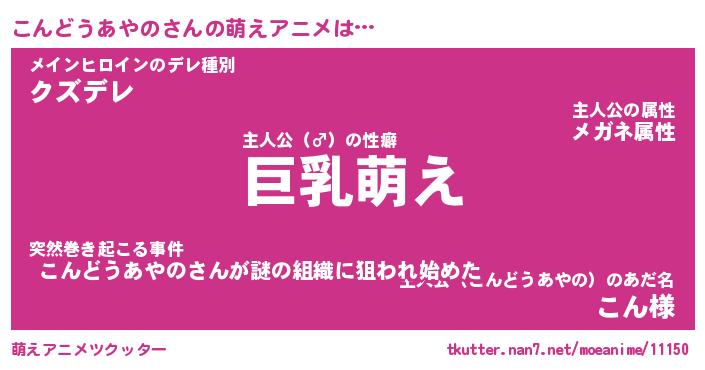 | 男性向けラノベタイトル風あだ名 | 『こんどうあやのの憂鬱』 |