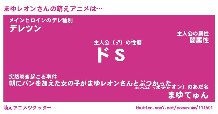 | 男性向けラノベタイトル風あだ名 | 『まゆレオンの憂鬱』 |