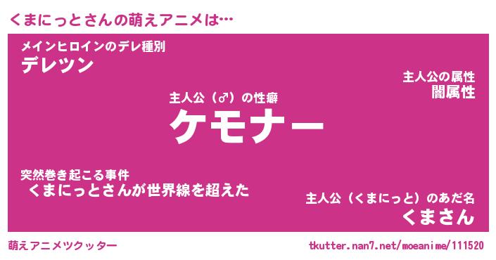 | 2回繰り返すあだ名 | 『くまくま』『くくまま』『ぬらぬら』 |