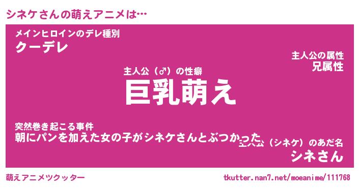 | 男性向けラノベタイトル風あだ名 | 『シネケの憂鬱』 |