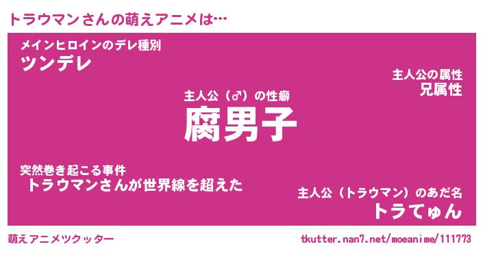 | 男性向けラノベタイトル風あだ名 | 『トラウマンアートオンライン』 |