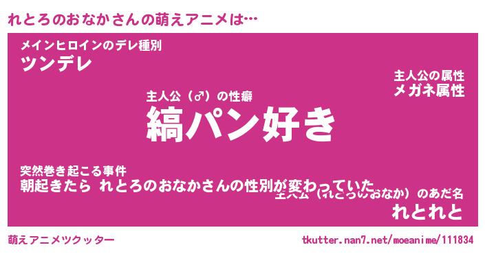 | 男性向けラノベタイトル風あだ名 | 『れとろのおなかの憂鬱』 |