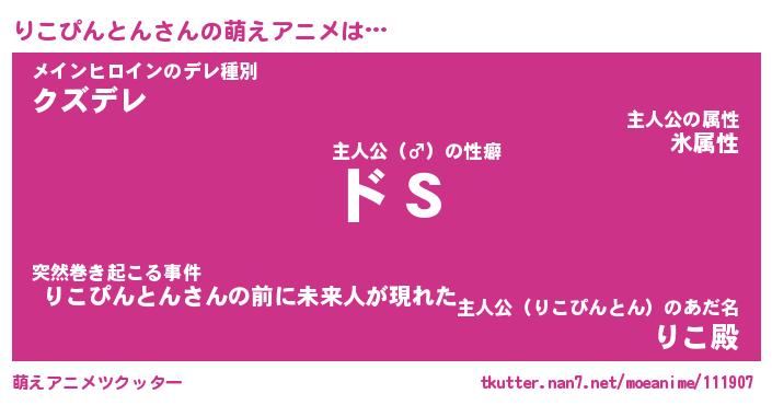 | 男性向けラノベタイトル風あだ名 | 『りこぴんとんの憂鬱』 |