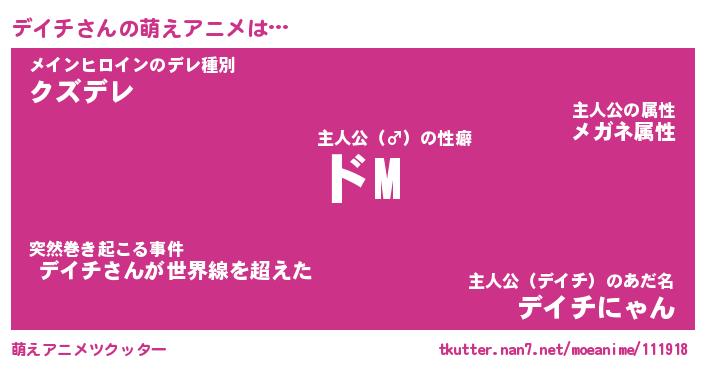 | 男性向けラノベタイトル風あだ名 | 『デイチの憂鬱』 |