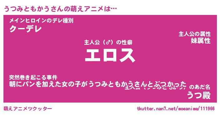 | 女子向けラノベタイトル風あだ名 | 『誰かこのうつみともかうを説明してください! ~契約から始まるウェディング~』 |