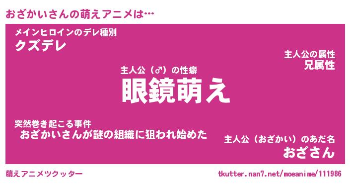 | ヘコむあだ名 | 『おざにー』『なまこ酢』『おざ太郎』 |
