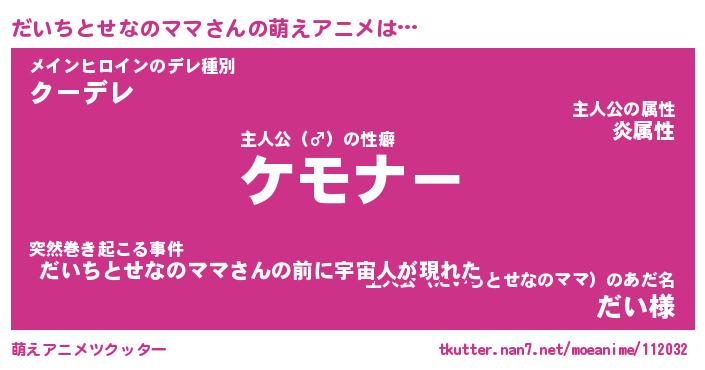 | 男性向けラノベタイトル風あだ名 | 『ダイチトセナノママアートオンライン』 |