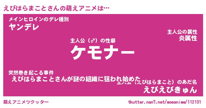 | 2回繰り返すあだ名 | 『えびえび』『ええびび』『ぬれぬれ』 |