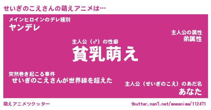 | 女子向けラノベタイトル風あだ名 | 『(仮)せいぎのこえのやんごとなき事情』 |