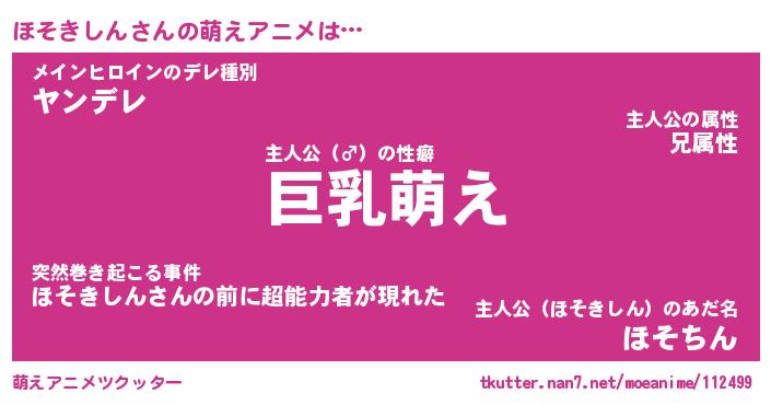 | 男性向けラノベタイトル風あだ名 | 『ほそきしんの憂鬱』 |