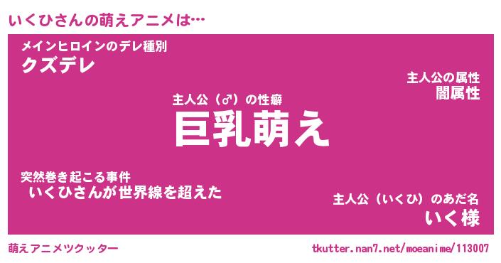 | 男性向けラノベタイトル風あだ名 | 『いくひの憂鬱』 |