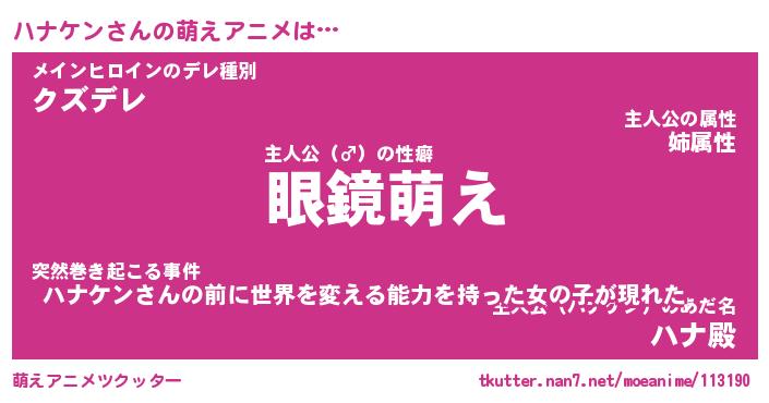 | 女子向けラノベタイトル風あだ名 | 『ハナケン姫と円卓の騎士』 |