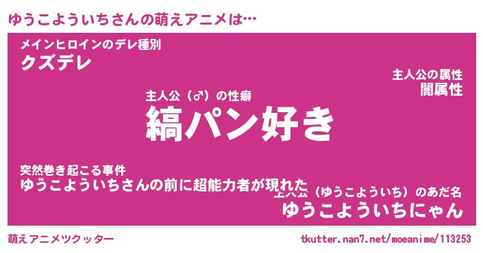 | 女子向けラノベタイトル風あだ名 | 『(仮)ゆうこよういちのやんごとなき事情』 |