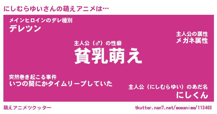 | 男性向けラノベタイトル風あだ名 | 『にしむらゆいの憂鬱』 |