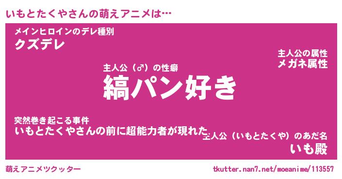 | 女子向けラノベタイトル風あだ名 | 『(仮)いもとたくやのやんごとなき事情』 |