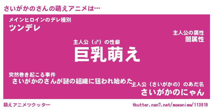 | 男性向けラノベタイトル風あだ名 | 『さいがかのの憂鬱』 |