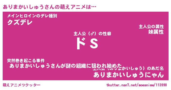 | 肩書あだ名 | 『ありまかいしゅう御曹司』 |