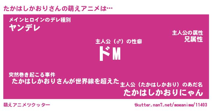 | 女子向けラノベタイトル風あだ名 | 『(仮)たかはしかおりのやんごとなき事情』 |