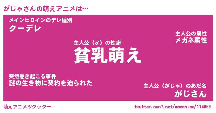 | 男性向けラノベタイトル風あだ名 | 『がじゃの憂鬱』 |