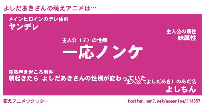 | 女子向けラノベタイトル風あだ名 | 『誰かこのよしだあきを説明してください! ~契約から始まるウェディング~』 |