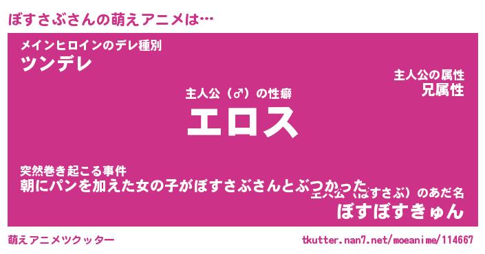 | ヘコむあだ名 | 『ぼすにー』『酢こんぶ』『ぼすっぺ』 |