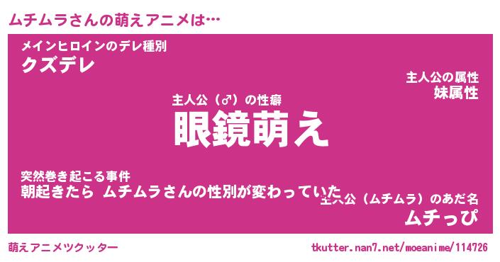 | 男性向けラノベタイトル風あだ名 | 『ムチムラの憂鬱』 |