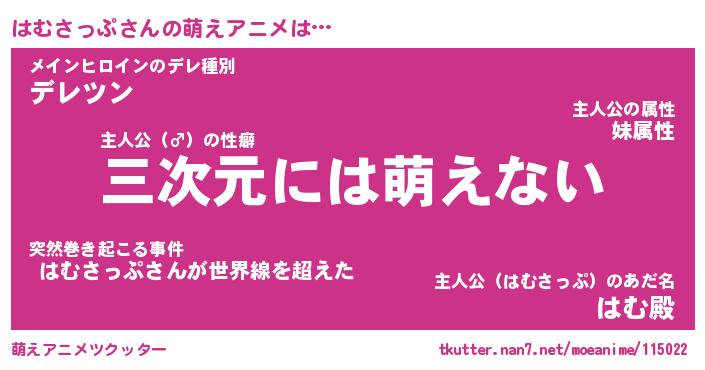 | 男性向けラノベタイトル風あだ名 | 『ハムサップアートオンライン』 |