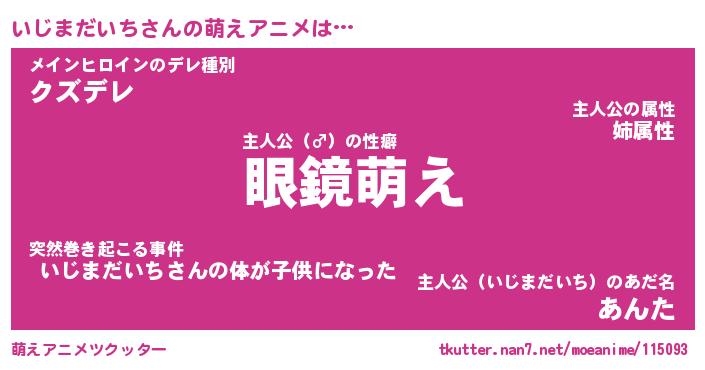| 男性向けラノベタイトル風あだ名 | 『いじまだいちの憂鬱』 |