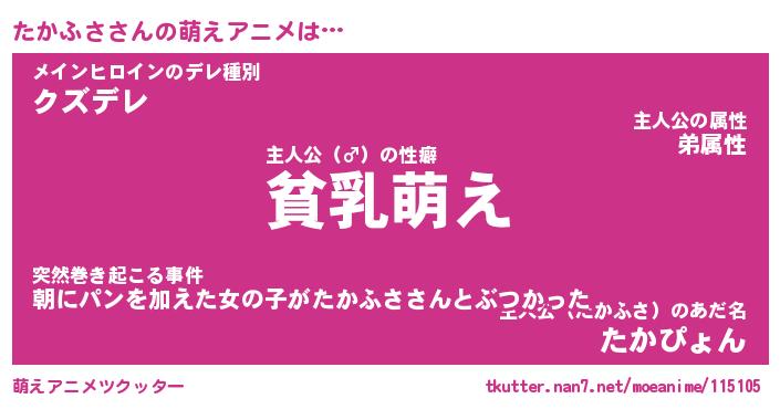 | 男性向けラノベタイトル風あだ名 | 『たかふさの憂鬱』 |