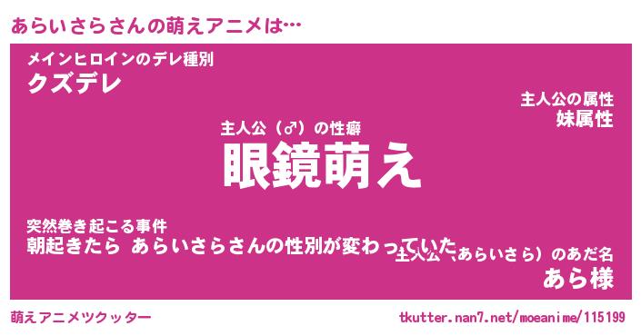 | 男性向けラノベタイトル風あだ名 | 『あらいさらの憂鬱』 |