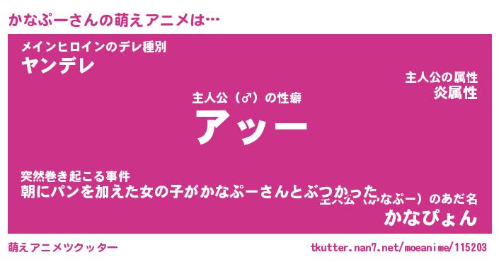 | ヘコむあだ名 | 『かなにゅー』『つくし』 |