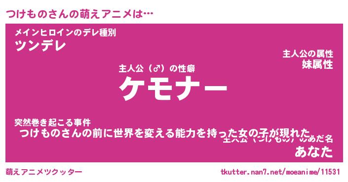 | 男性向けラノベタイトル風あだ名 | 『ツケモノアートオンライン』 |