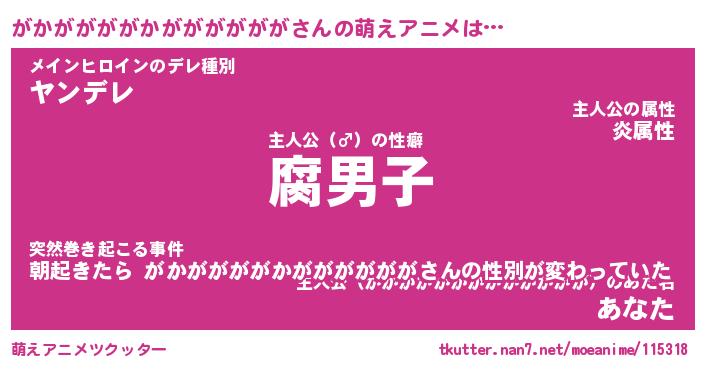 | 男性向けラノベタイトル風あだ名 | 『ガカガガガガカガガガガガガアートオンライン』 |