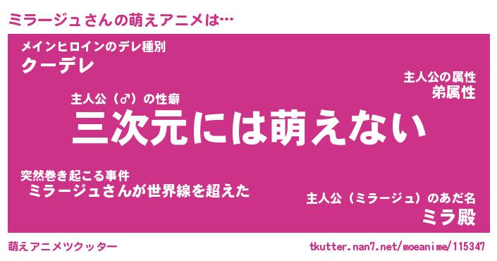 | ヘコむあだ名 | 『ミラにゅー』『レバニラ』『ミラお』 |