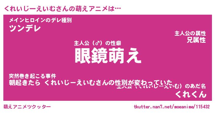| 男性向けラノベタイトル風あだ名 | 『くれいじーえいむの憂鬱』 |