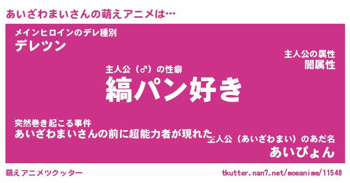 | 男性向けラノベタイトル風あだ名 | 『あいざわまいの憂鬱』 |