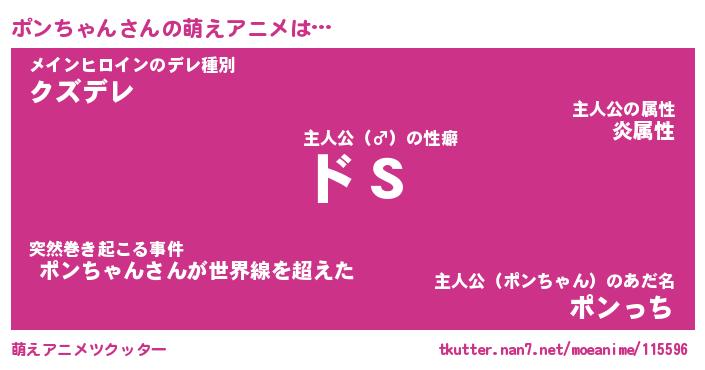 | 男性向けラノベタイトル風あだ名 | 『ポンちゃんの憂鬱』 |