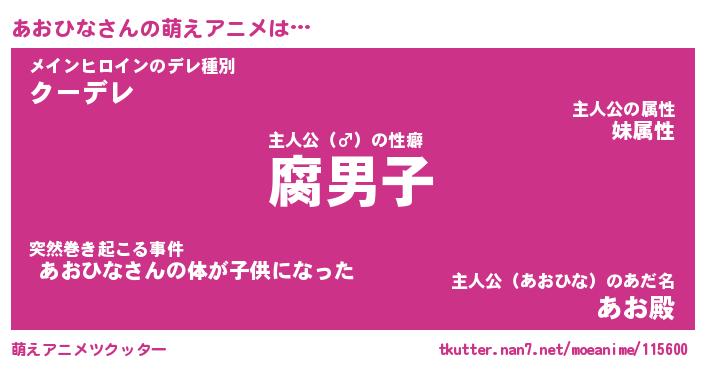 | 男性向けラノベタイトル風あだ名 | 『アオヒナアートオンライン』 |