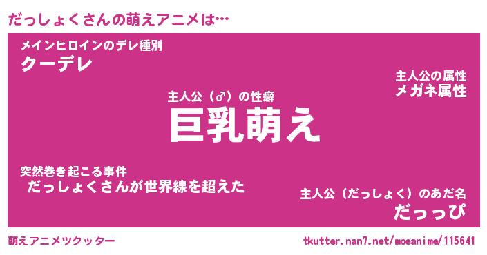 | 男性向けラノベタイトル風あだ名 | 『だっしょくの憂鬱』 |