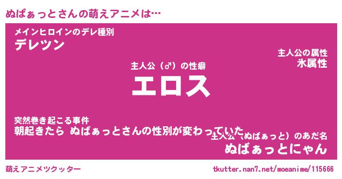 | ヘコむあだ名 | 『ぬばもー』『豆乳』『ぬばお』 |
