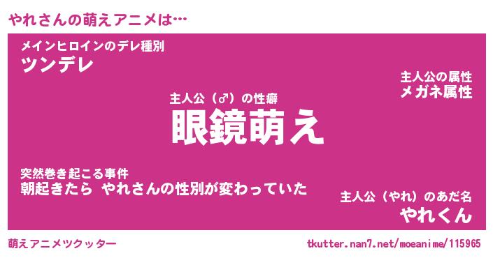 | 男性向けラノベタイトル風あだ名 | 『やれの憂鬱』 |