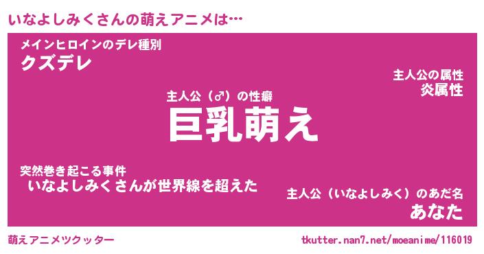 | 男性向けラノベタイトル風あだ名 | 『いなよしみくの憂鬱』 |